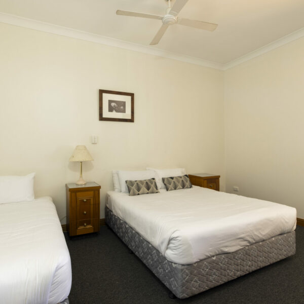 Located on the first floor, our triple rooms sleep three adults complete with a queen bed and one king single. Fan, tea and coffee making facilities and complimentary toiletries. Iron and ironing board are available upon request.